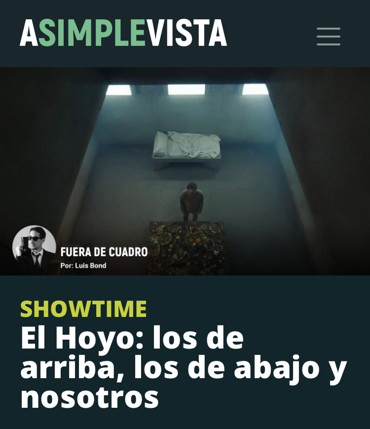 ¡Por acá les dejo el link a mi columna #FueraDeCuadro de www.asimplevista.com mi crítica de #ElHoyo de #Netflix! El Hoyo: los de arriba, los de abajo y nosotros