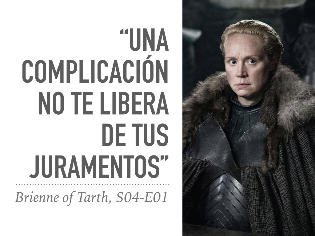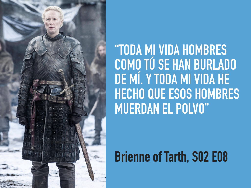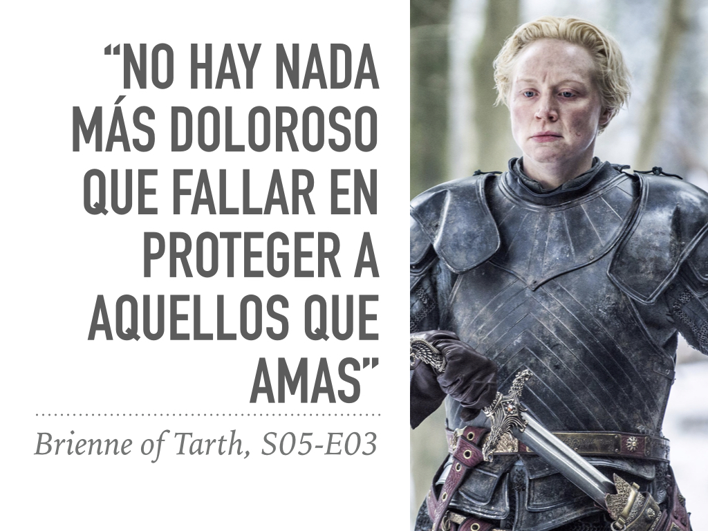 Este análisis es de un personaje que, a primera vista, pareciera no haber sufrido mayores cambios durante el desarrollo de la historia, pero que internamente ha madurado muchísimo: #BrienneOfTarth . A pesar de ser una excelente guerrera y estratega, ella difiere totalmente del mundo amoral y psicopático en el cual se desarrolla #GameOfThrones .